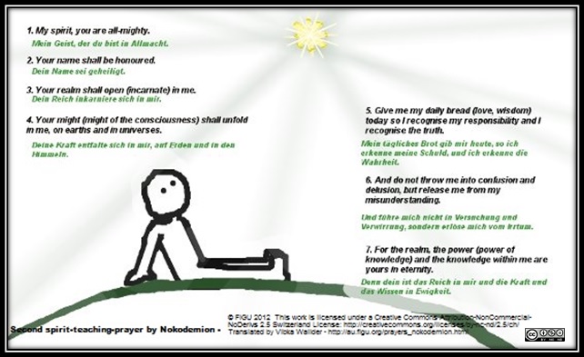 G'day Melissa Thankyou Scott and Thankyou Melissa If you have time this one from here please http://au.figu.org/prayers_nokodemion.html Seventh spirit-teaching-prayer by Nokodemion By means of the power of my consciousness - with my intellect and with my rationality alone - I exercise the all-mightiness over my knowledge, the truth, my ability, my love and truthliness. Only my might spreads itself in me, however, no other might, thus I am always conscious of my own thoughts and feelings and I unfold and use my knowledge, my wisdom and my ability, and with this I lead everything to the true love, freedom, harmony and to the peace in me. The power of my consciousness is a distinctness to me, so I use it to my own well-being for my thoughts and feelings and the psyche as well as for my body. Daily I unfold and use my consciousness-power, so it is constantly working in me and allows me to face my unknowledge, whereby I nourish my knowledge and my wisdom with love, feeling for others, as well as with understanding and rationality. Through the power of my consciousness I myself recognise my errors and resolve them and avoid committing new ones, so no errors can hinder me anymore in my development and advancement. The power of my consciousness allows me to recognise and avoid false teachings, wrong modes of thinking and all dangers of belief-dependency, as well as harmful material and worldly things. Through my consciousness-power I myself am in control of my intellect and my rationality, and through the all-mightiness of my consciousness I am, at all times, conscious of my power, my ability, my peace and knowledge, as well as my wisdom, love and harmony and control everything. and if you have time this one please love, with or without German 1. My spirit, you are all-mighty. 2. Your name shall be honoured. 3. Your realm shall open (incarnate) in me. 4. Your might (might of the consciousness) shall unfold in me, on earths and in universes. 5. Give me my daily bread (love, wisdom) today so I recognise my responsibility and I recognise the truth. 6. And do not throw me into confusion and delusion, but release me from my misunderstanding. 7. For the realm, the power (power of knowledge) and the knowledge within me are yours in eternity. Salome ilovebilly Every Cloud Has A Silver Lining. Truly, I know that there is no resistance to my successes, also not in my thoughts and not in my imagination and also not in my feelings. 77 Being emotional is not logical but is temporary madness and you are either logical or mad not both, i am grateful for my emotions but need to control them.